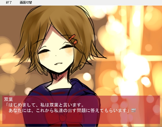 2月11日のアルバイト中に漠然とお話を練り、12日にシナリオ起こしながらプログラムを組み、13日に絵を描き音を集めマスターアップしました。