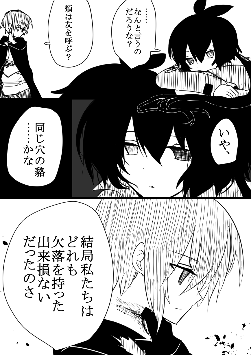 ヤンデレではないですが、気持ちをシリアスに切り替える為に一ページ雰囲気漫画描いてみました。雰囲気だけです…!