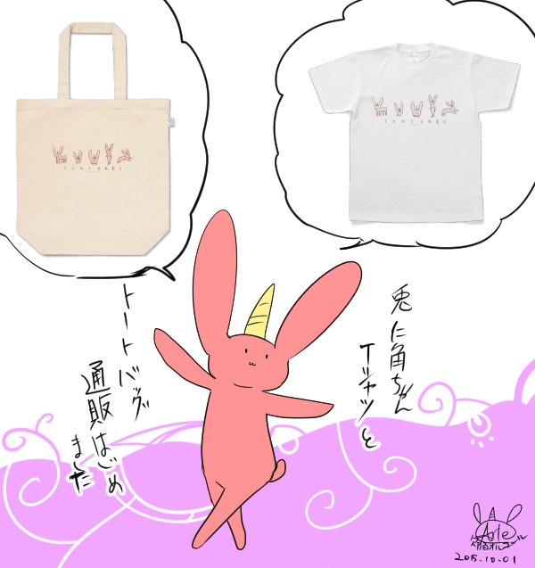 欠陥オルゴールグッズが出ました。兎に角ちゃんTシャツとトートバッグです。BOOTHで受け付けております。