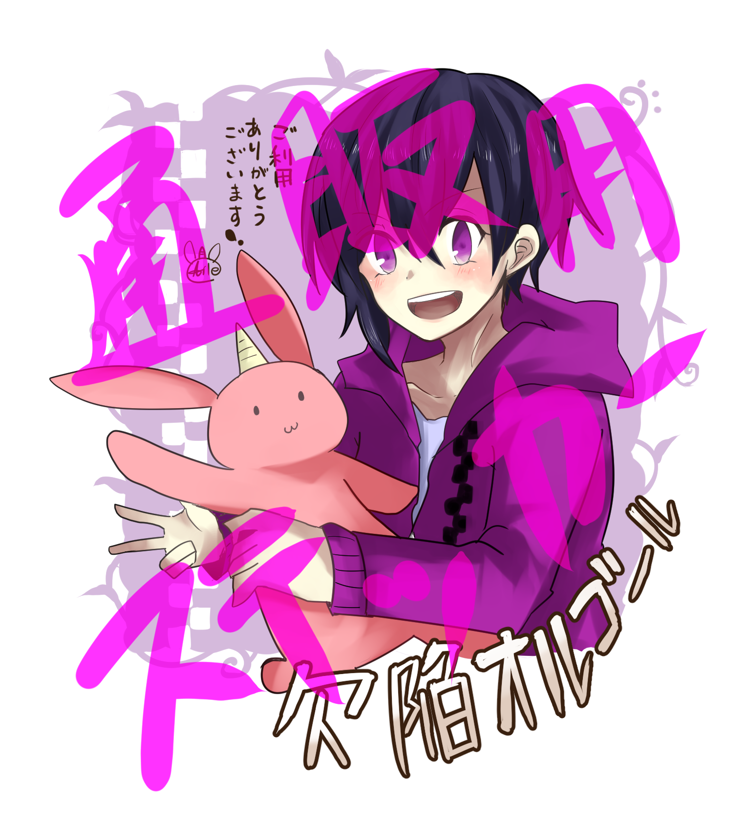 OPP袋を以前はセロテープやらマスキングテープやらで留めていたのですが、これからはこの特製ステッカーを使います!夢劇荘の新刊が出るごとにステッカーのデザイン新調したいなと思っています!!つまり2巻が出るまでの間紫くんです。早く2巻出したいって言う己への尻叩きを込めて…。