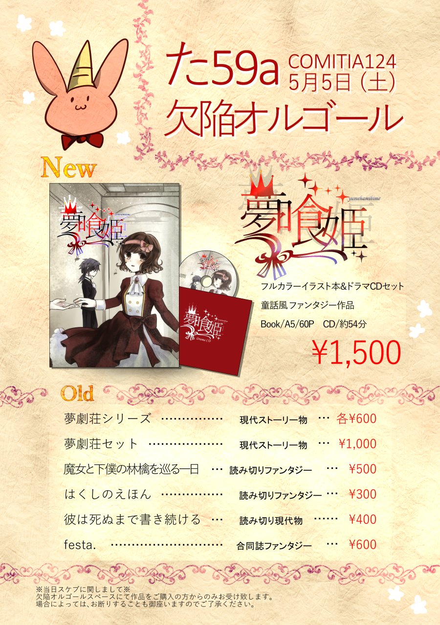 5月5日土曜日 COMITIA124【た59a】欠陥オルゴール